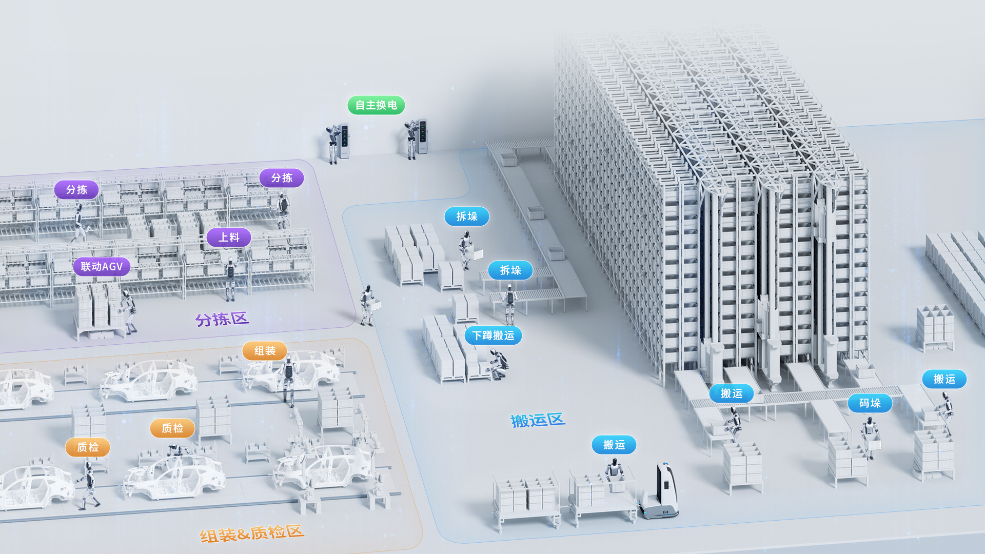 Walker S2, as the latest self-developed new generation of industrial humanoid robot by Ubtech, achieves industrial upgrading of traditional manufacturing factories through spiral AI evolution of robotic standalone autonomy and group collaboration, collaborating with other automation equipment in industrial environments.Walker S2 tends to the design philosophy of "collaborative coexistence", endowing robots with a form language and interaction method that humans can instinctively understand and empathize with, transforming them from cold machines into trustworthy and collaborative "partners", enhancing the acceptance, efficiency, and pleasure of human-robot collaboration. In industrial environments, robots serve as a medium connecting people and people, as well as people and equipment, enabling humans and robots to collaborate to complete related tasks. Compared to other industrial robots, Walker S2 possesses greater vitality and inclusiveness, exhibiting a dynamic organic flow.